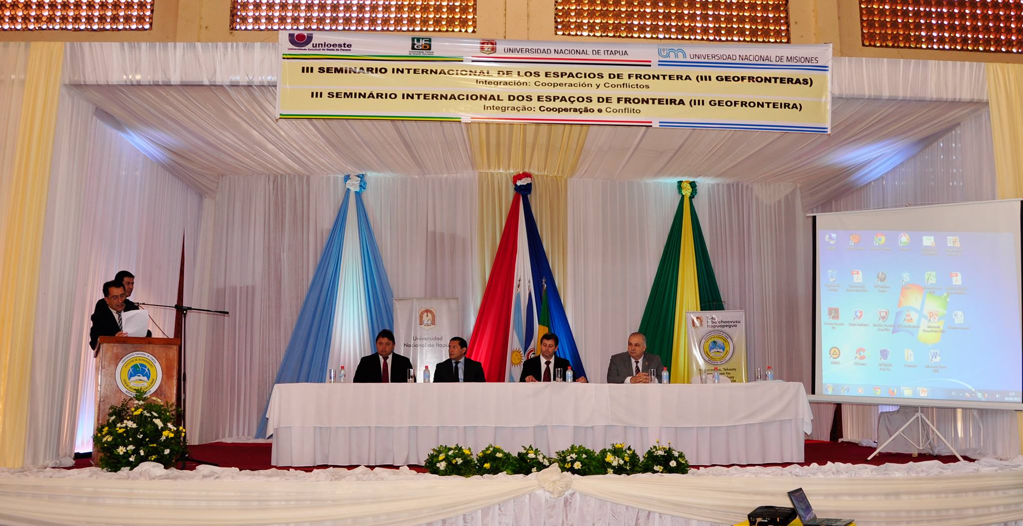 Con las entonaciones de los himnos nacionales de Paraguay y de las hermanas Repúblicas de Argentina y Federativa de Brasil, dieron apertura a la ceremonia inaugural del “III Seminario Internacional de los Espacios de Frontera (III Geofrontera)”, que se lleva a cabo en el Campus de la Universidad Nacional de Itapúa, del 8 al 10 de de setiembre del año en curso.