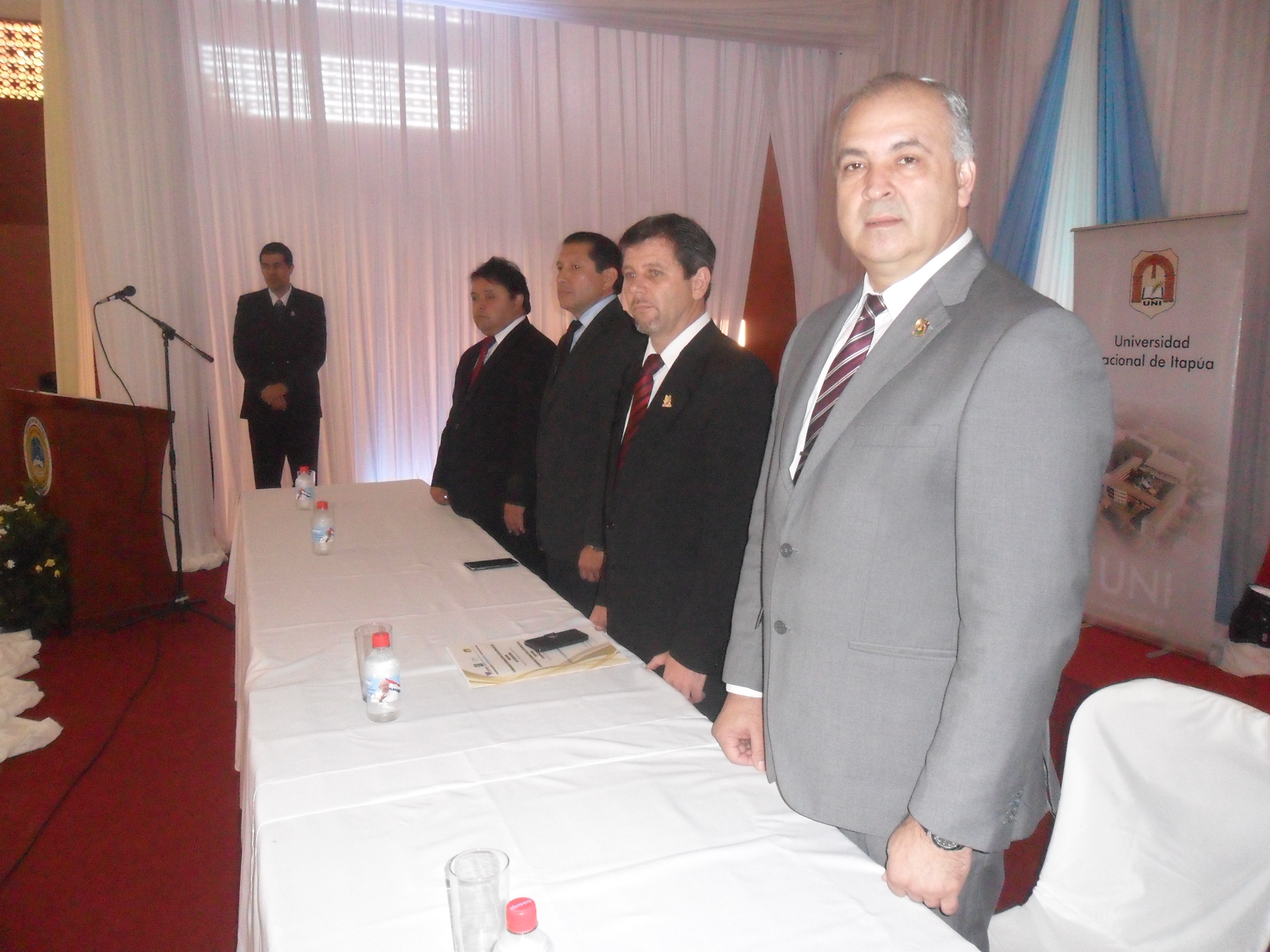 El emotivo acto se desarrolló esta mañana, en el Salón de Usos Múltiple (SUM), con la presencia del intendente de la ciudad de Encarnación, Abg. Hugo Berreto; el Presidente de la Junta Departamental, Abg. Gustavo Miranda Villamayor; el conferencista principal y docente de la Facultad de Ciencias Jurídicas de la UNI, Abg. Joel Maidana Vega y el anfitrión de la ceremonia, el Decano de la Facultad de Humanidades, Ciencias Sociales y Cultura Guaraní, Dr. Antonio Kiernyezny Rovate, quienes formaron parte de la mesa principal de la ceremonia.