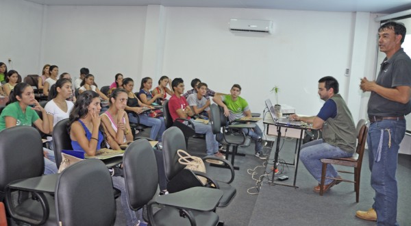 Técnicos Especialistas en Educación Ambiental del Sector de Medio Ambiente de la Entidad Binacional Yacyretá brindaron una charla sobre la importancia del cultivo de la crotalaria (crotalaria juncea) como alternativa para el control biológico contra el aedes aegypti, mosquito transmisor del dengue, zika y chicungunya. La actividad se cumplió en el salón auditorio de la Facultad de Ciencias y Tecnología (FaCyT). Luego de las explicaciones sobre plantación, manejo y cuidado cultural de la planta leguminosa, los técnicos realizaron una demostración de cómo plantar la semilla de crotalaria.