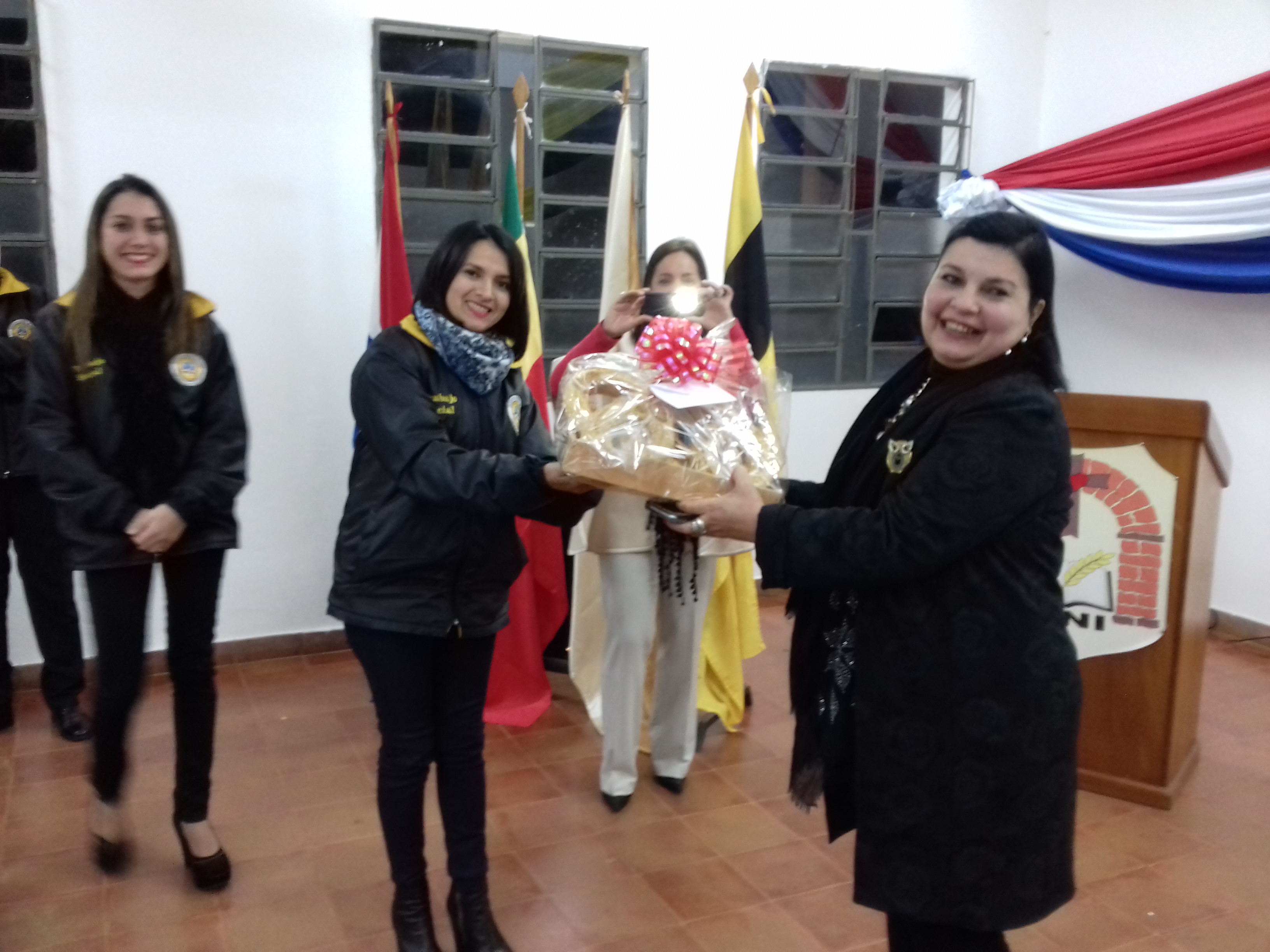 Terminada la jornada los estudiantes han entregado a la disertante un presente con el producto típico de la comunidad, el patrimonio gastronómico de Coronel Bogado: el riquísimo CHIPA BOGADENSE.