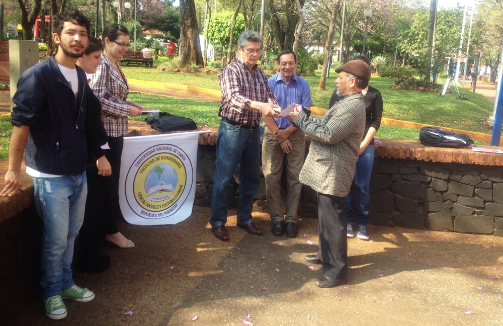 La Facultad de Humanidades, Ciencias Sociales y Cultura Guaraní, en coincidencia con el Día de la Lengua Guaraní, que se conmemora cada 25 de agosto, realizó una campaña de pegatina por el microcentro de la ciudad de Encarnación. Los adhesivos con los colores de la tricolor bandera tenían palabras alusivas en guaraní, fue muy aceptada por los transeúntes y dueños de centros comerciales, y responsables de instituciones públicas de la ciudad. Participaron de