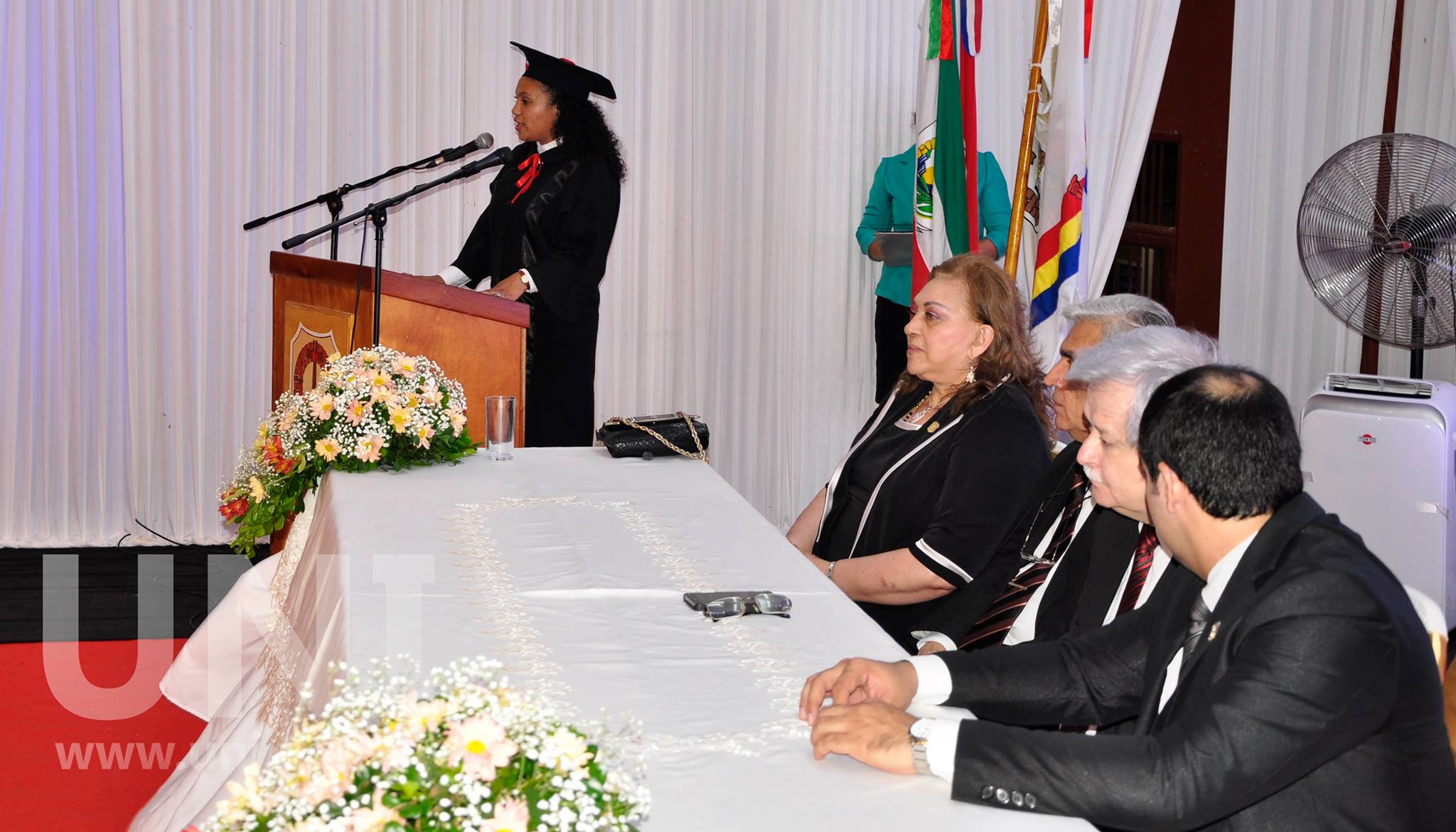 En representación de los egresados de la UNI la Abog. Ramona Elizabeth Hermosilla Ferreira, Mejor Egresada de la Carrera de de Derecho