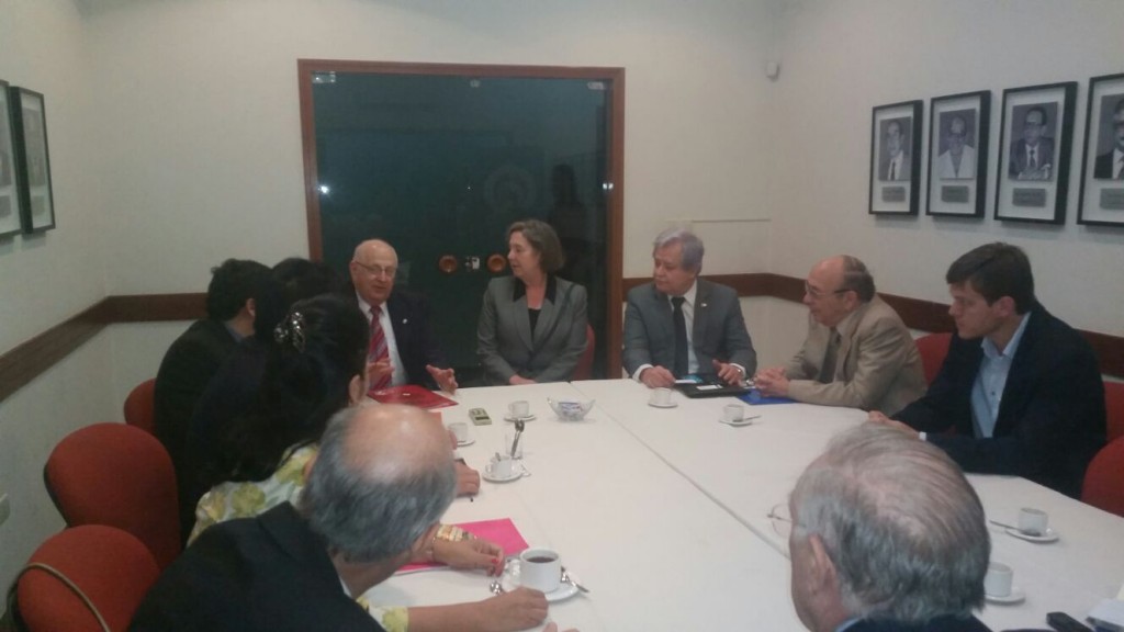 En el local de la Cámara de Comercio Paraguayo Americana, se llevó a cabo esta mañana una reunión entre la Embajadora de los Estados Unidos, Leslie A. Bassett; el Presidente del Consejo Nacional de Educación Superior (CoNES), Ing. Hildegardo González Irala; el Presidente de la Cámara de Comercio Paraguayo Americana, Ing. Ángel Auad, entre otras destacadas autoridades de la Educación Superior.