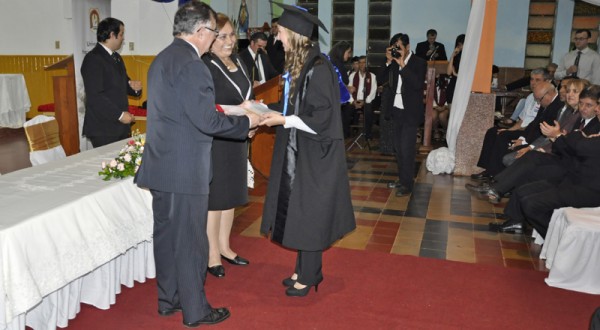 Distinción: Diploma de Honor y Medalla de Oro, Leticia Elizabeth Gómez de Brinkmann, Mejor Egresada y Estudiante Sobresaliente de la Carrera Licenciatura en Trabajo Social de la Facultad de Humanidades, Ciencias Sociales y Cultura Guaraní.