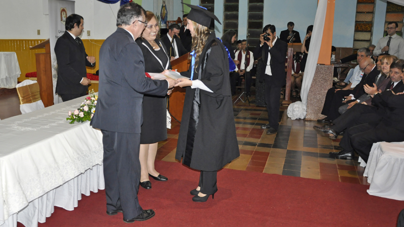 Distinción: Diploma de Honor y Medalla de Oro, Norma Elizabeth Davidiuk Jomich, Mejor Egresada y Estudiante Sobresaliente de la Carrera de Ciencias Contables de la Facultad de Ciencias Económicas y Administrativas (FaCEA).