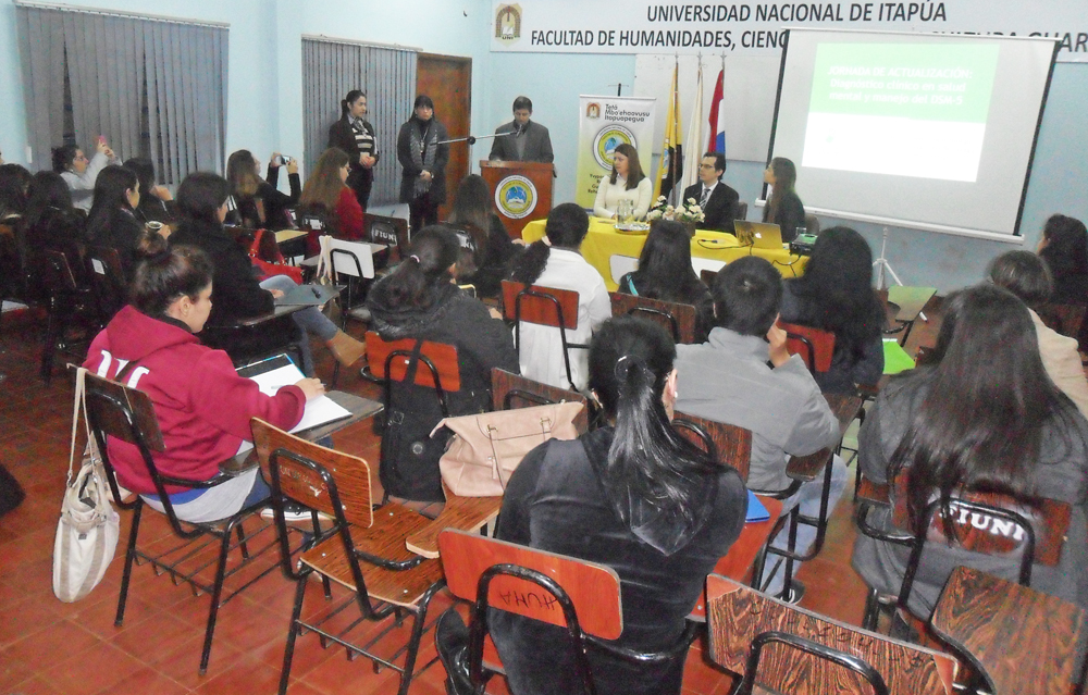 Con éxito se desarrolló en la Facultad de Humanidades campus Encarnación, la Jornada de  Actualización: Diagnóstico Clínico en Salud Mental y manejo del DSM-5.  Organizadas por la Mg.  Carolina de Montañez; Lic.  Mariana Figueredo, conjuntamente con estudiantes del 4º curso de la Carrera Licenciatura en Psicología Clínica,  y la Lic.  Alicia Martínez,  Jefa del Departamento de Extensión e Investigación de la citada Unidad Académica. Más de 90 profesionales y estudiantes asistieron a esta importante convocatoria, que superó las expectativas de las organizadoras.