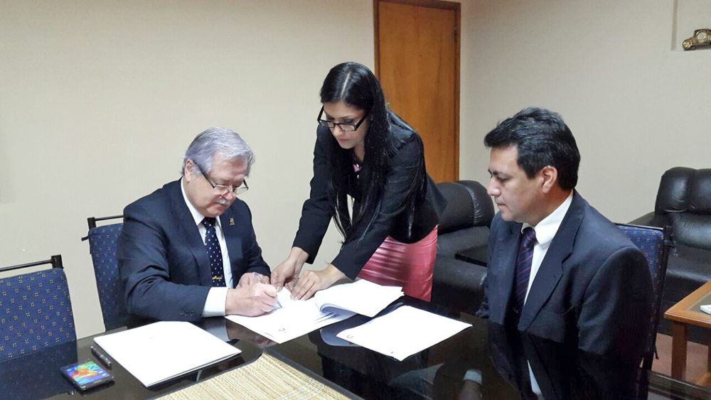 Pactaron el acuerdo el Prof. Ing. Hildegardo González, Rector de la UNI y el Dr. Raúl Aguilera, Presidente de la ANEAES, el acto se efectuó en la Oficina de la Presidencia de la ANEAES.