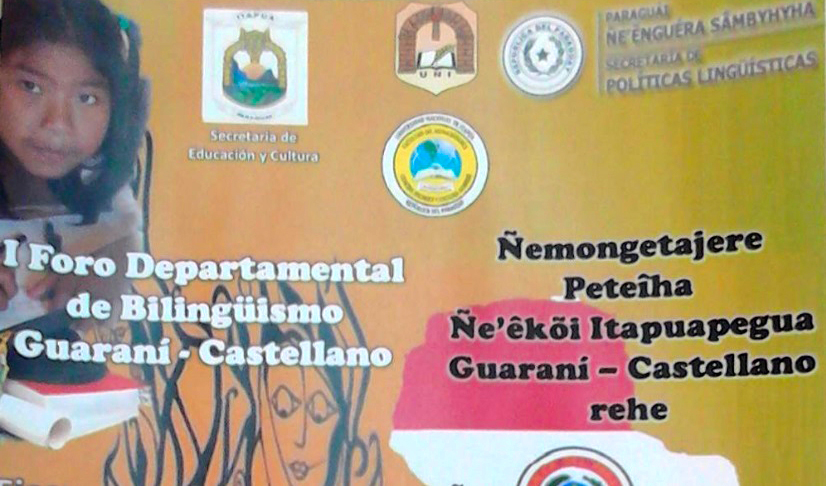 En la Sala de Sesiones de la Junta Departamental de la Gobernación de Itapúa, el jueves 27 de agosto de 15:00 a 19:00 se llevará a cabo el I Foro Departamental de Bilingüismo Guaraní-Castellano (Ñemongetajere Peteĩha ñe’ekoi itapuapegua Guarani-Castellano rehe), dirigido a educadores de todos los niveles, instituto de Formación Docente, carreras universitaria de las áreas de Educación y Lenguas.