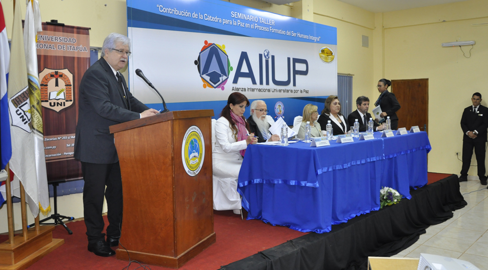 En el Aula Magna del Bloque 7 de la Universidad Nacional de Itapúa se realizó el I Seminario Taller Nacional “Contribución de la Cátedra para la Paz en el Proceso Formativo del Ser Humano Integral”, organizado por la Alianza Internacional Universitaria por la Paz (ALIUP).