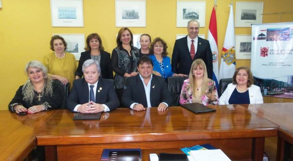En el despacho del Intendente Municipal de Encarnación, Abog. Joel Maidana, se estamparon la firma del convenio de cooperación entre la Municipalidad de Encarnación, la Universidad Nacional de Itapúa UUNI) y el Club Soroptimist Internacional, para la creación del Centro dee Orientación y2. Firma de convenio Apoyo a la Familia; Educación en Valores. Los firmantes fueron el Rector de la UNI y actual Presidente del Consejo Nacional de Educación Superior Prof. Ing. Hildegardo González Irala, el Abog. Joel Omar Maidana vega, Intendente Municipal de Encarnación, y la Sra. Avelina López de Maier, presidenta del Club Soroptomist Internacional.