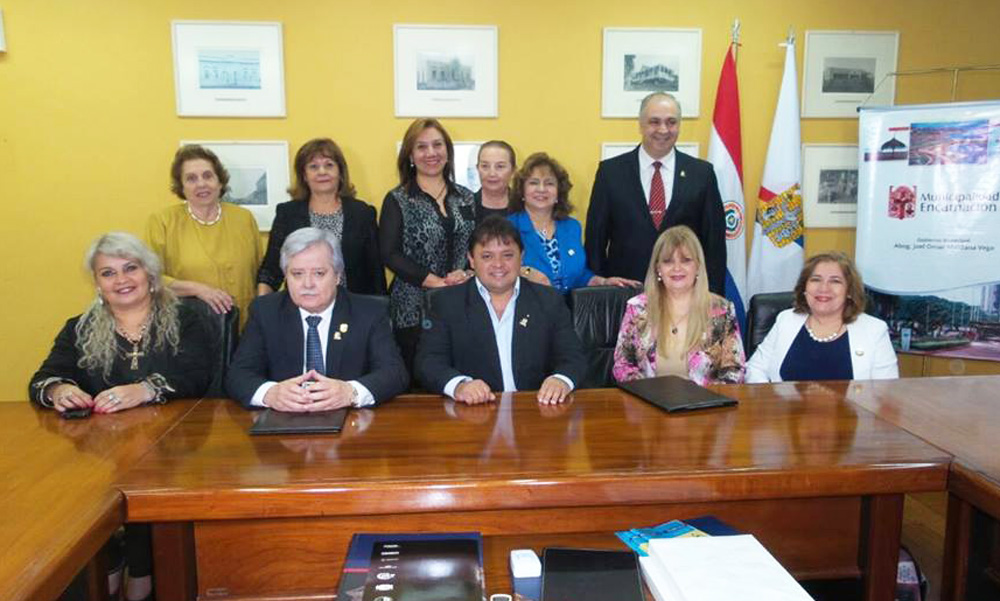 En el despacho del Intendente Municipal de Encarnación, Abog. Joel Maidana, se estamparon la firma del convenio de cooperación entre la Municipalidad de Encarnación, la Universidad Nacional de Itapúa UUNI) y el Club Soroptimist Internacional, para la creación del Centro dee Orientación y2. Firma de convenio Apoyo a la Familia; Educación en Valores. Los firmantes fueron el Rector de la UNI y actual Presidente del Consejo Nacional de Educación Superior Prof. Ing. Hildegardo González Irala, el Abog. Joel Omar Maidana vega, Intendente Municipal de Encarnación, y la Sra. Avelina López de Maier, presidenta del Club Soroptomist Internacional.