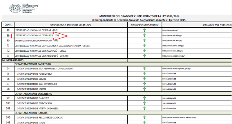 De acuerdo con lo publicado en dicha nómina, la Universidad Nacional de Itapúa se define como una de las entidades autónomas del Estado que cumple la disposición en un 100%. Acceda al informe aquí.