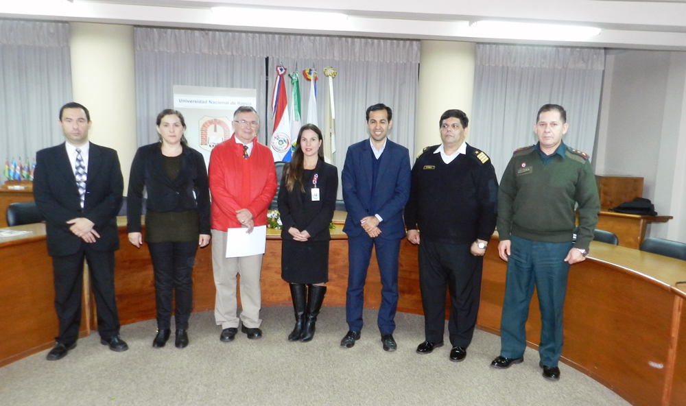 La Delegación estuvo compuesta por el tutor evaluador Cnel. DEM Vicente Torres, Cap. Navío DEM Óscar Gómez, el Lic. Cont. Carlos Zaracho, la Abog. Laura Talavera, la Dra. Gladys Fariña.