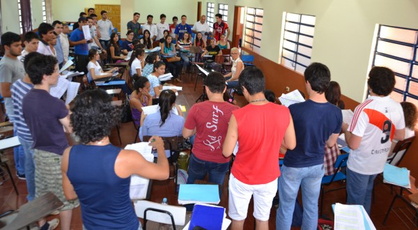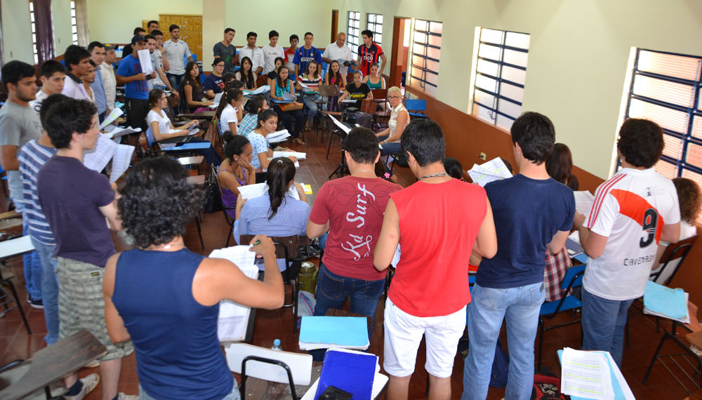 Los lunes y viernes de 16:00 a 18:00 hs., se realizan normalmente los ensayos para consolidar el nuevo coral de la Universidad Nacional de Itapúa. Estas prácticas se realizan en dos salas en las primeras horas. Teniendo en cuenta para mejorar los compases, los tiempos y para que los nuevos integrantes realicen una mejor aprehensión de las partituras y las primeras obras, ensayan por separados, tenores y bajos por una parte con Ricardo Insfran, quien brinda a los participantes algunas técnicas para el canto coral.