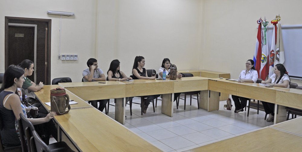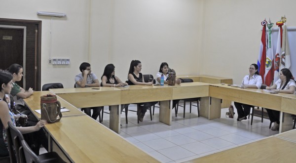 Estudiantes intercambistas de la Universidad Nacional de Itapúa (UNI), se reunieron con la Abog. Carmen Bogado, Responsable del Programa Escala Estudiantil y la Lic. Laura Giménez, con miras a ser facilitadores durante la próxima cumbre de rectores de la Asociación de Universidades del Grupo de Montevideo (AUGM) a realizarse en la UNI el 9 y 10 de mayo próximo, donde la AUGM cumplirá 25 años de fundación y se llevará a cabo el “2º Seminario de Educación Gestión Socio-Ambiental en el Contexto de la Reforma Universitaria” y la LXIX Reunión del Consejo de Rectores de la Asociación de Universidades del Grupo Montevideo.
