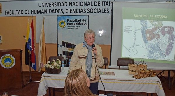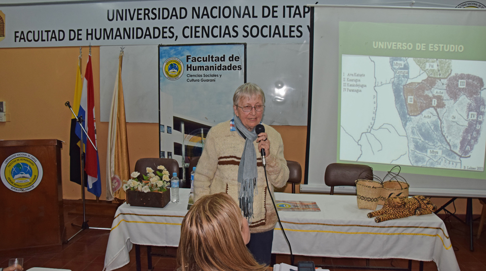 La Hna. Mariblanca Barón, dictó la Conferencia y libro de su autoría “Los Ava Guaraní Paranaenses. Un Etnocidio Sistemático”, en el aula de Posgrado de la Facultad de Humanidades de la Universidad Nacional de Itapúa campus Encarnación, ante la presencia masiva de participantes (directivos, docentes, estudiantes de Relaciones Internacionales, representantes del pueblo Mbya Guaraní, entre otros).